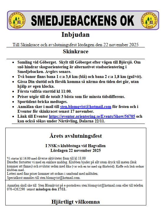 Välkommen till Smedjebackens OK, en av klubbarna i tävlingsalliansen Västerbergslagens OL.
